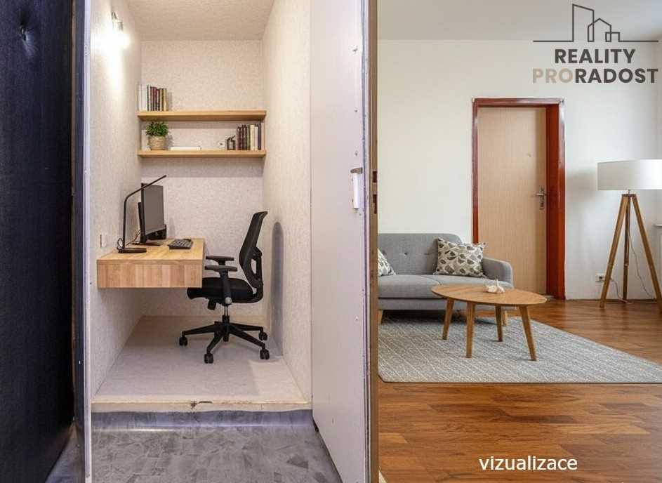 Stav bytu je před rekonstrukcí, což dává možnost upravit dispozici a vybavení podle vlastních představ. K bytu náleží sklepní kóje .