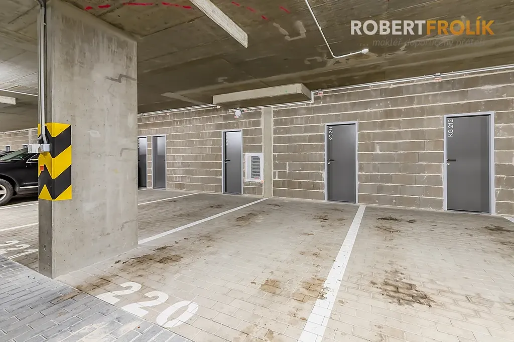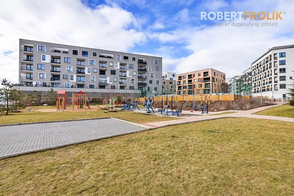 V domě je i společná kolárna a kočárkárna. Tu už budete mít v ceně. Kousek od domu je venkovní sportoviště, konečná tram, nedaleko je OC Šestka, o kousek níž do Prahy pak koupaliště Džbán a Divoká Šárka.
