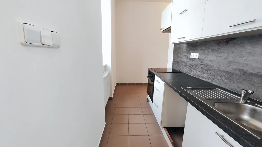 V bytě naleznete předsíň s botníkem navazující na kuchyňskou linku se sklokeramickou varnou deskou, el. troubou, digestoří a prostorem pro pračku (s bočním otvíráním) a lednici. Koupelna je vybavena vestavným sprchovým koutem, umyvadlem a WC. Ohřev vody je zajištěn pomocí el. bojleru, který v kombinaci s el. kotlem přímo v bytě a zateplením domu zajišťuje nízké provozní náklady. Zálohy na spotřebu el. energie si navíc nájemník přepisuje na sebe, takže máte maximálně transparentní přehled o své spotřebě a můžete tak lépe regulovat výši záloh dle aktuální spotřeby.