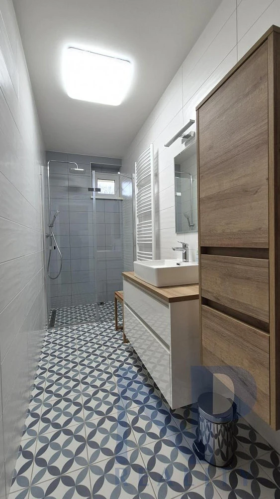 Nabízíme Vám k pronájmu velmi pěkný byt 1+1 po kompletní rekonstrukci o výměře 44 m² ve 2. NP klidného cihlového domu. Byt se sestává z velkého pokoje, kuchyně, předsíně, koupelny se sprchovým koutem, samostatným WC, V bytě je ještě umístěna komora, v níž je umístěn kotel a bojler, ta je přístupná z kuchyně. Podlahy jsou dřevěné parkety a dlažba. Okna jsou plastová Vytápění a ohřev vody zajištuje elektrokotlem a bojler. Byt disponuje balkonem do dvora a v suterénu se nachází velký sklep. V kuchyni je umístěna nová linka IKEA, spotřebiče (myčka, varná deska, kombinovaná trouba horkovzdušná/mikrovlna), lednice. Internet PE3NY.