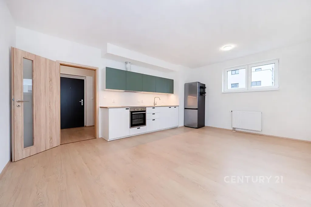 Byt se nachází ve 2. patře cihlové novostavby a nabízí příjemné a praktické bydlení. Součástí pronájmu je parkovací stání, balkon a také kóje na chodbě pro uložení věcí. Dispozici tvoří koupelna s vanou, toaletou a umyvadlem a světlá obytná místnost s kuchyňským koutem. Kuchyň je vybavena lednicí, myčkou, troubou, mikrovlnnou troubou a digestoří.