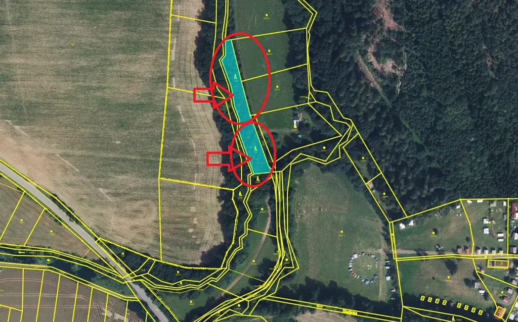 Pozemky jsou podél pole, vede k nim polní cesta (dobře dostupné) - jasně viditelné hranice.