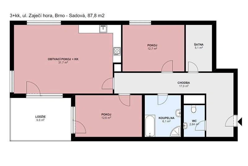 Pronájem bytu 3+kk, Brno, Zaječí hora, 87 m2