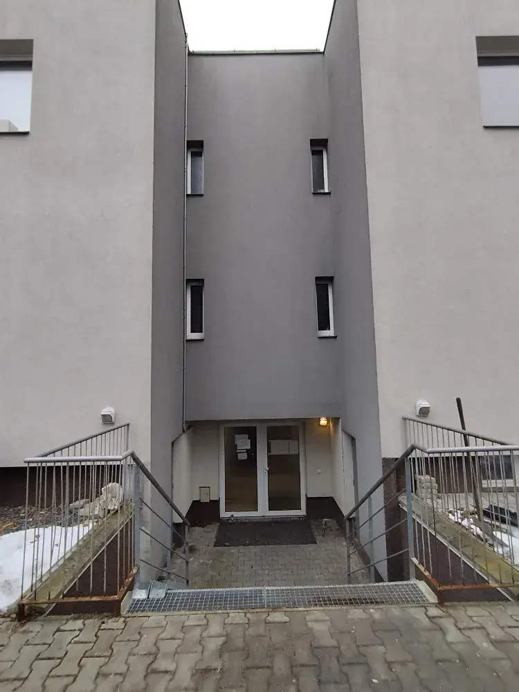 Byt se nachází v prvním patře, jeho dispozici tvoří vstupní chodba, koupelna se sprchovým koutem a WC, obývací pokoj s kuchyňským koutem a samostatný pokoj. Na podlahách je dlažba a plovoucí podlaha. Bytový dům je napojen obecní vodovod a kanalizaci. Vytápění a ohřev teplé vody je řešeno společným plynovým kotlem. K bytu v případě zájmu lze pronajmout parkovací stání přímo před domem za 1.000Kč/měs. Měsíční poplatky jsou hrazené formou paušální platby ve výši 7.000Kč/měs., požadovaná kauce je ve výši dvou měsíčních nájmů.