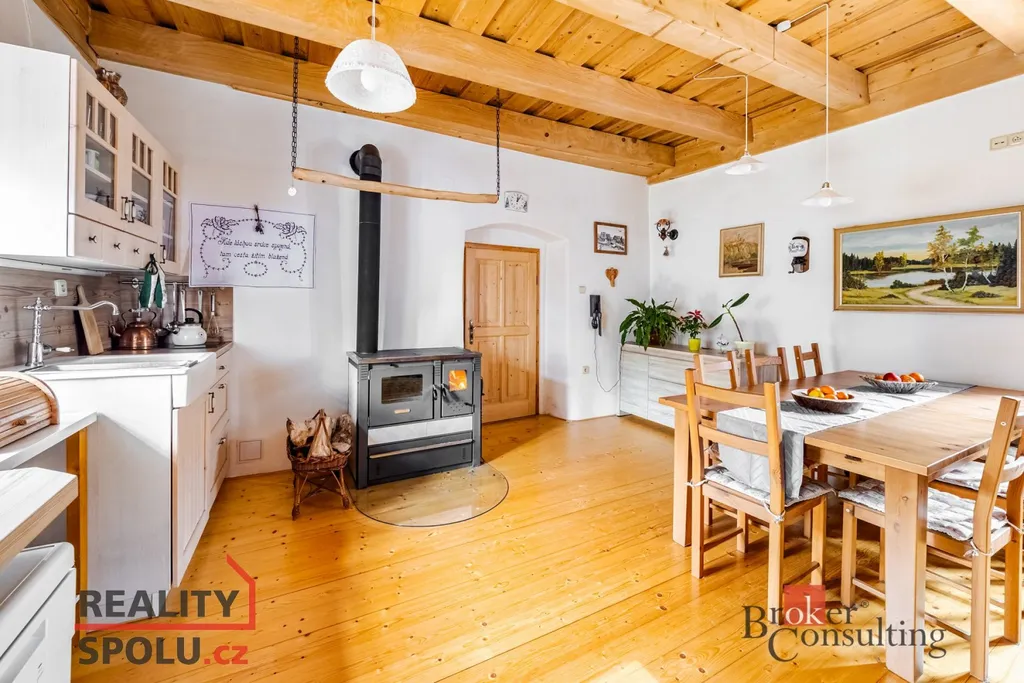 Vnitřek domu prošel v roce 2023 rekonstrukcí a majitelé mu ponechali nádherný původní ráz venkovského stavení. Dům se skládá z prostorné obytné místnosti, která je využívaná jako obývací pokoj, jídelna a kuchyňská část, dále jsou zde dva pokoje a koupelna s vanou a toaletou. Podkroví je pochozí a lze v něm vybudovat další pokoje. Nemovitost je ve velmi dobrém technickém stavu a lze ji ihned užívat.