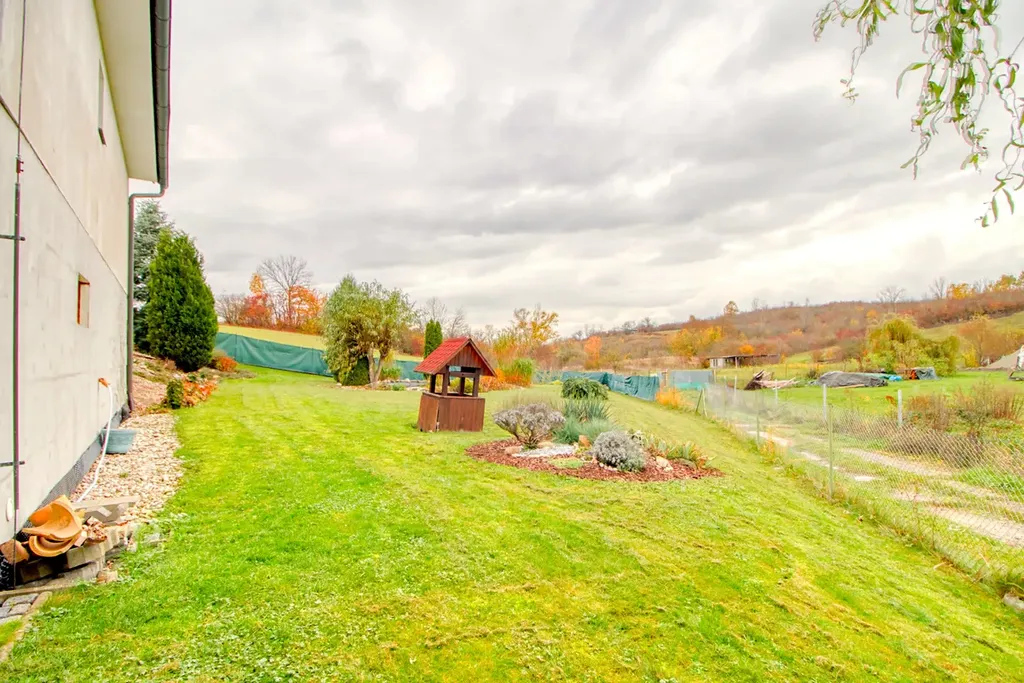 Dům nabízí podlahovou plochu 252 m², stojí na pozemku o velikosti 1 091 m² a díky energetické třídě B vás potěší velmi nízkými provozními náklady. V obývacím pokoji vás zahřeje krb na dřevo, k odpočinku láká velká terasa a kolem domu se rozprostírá zahrada plná zeleně a vzrostlých stromů, která poskytuje naprosté soukromí.