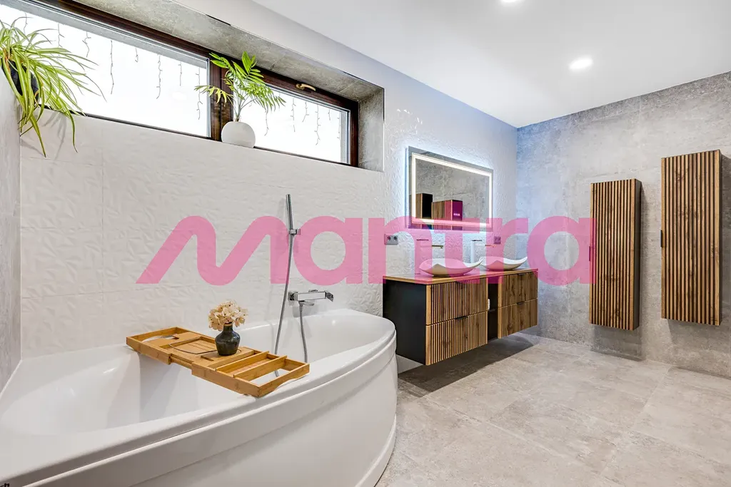 Tato moderní novostavba 5+kk v obci Úhonice spojuje čistou architekturu, kvalitní materiály a špičkové technologie do harmonického celku. Nachází se v nové rezidenční čtvrti tvořené výhradně novostavbami a nabízí klidné rodinné bydlení jen pár minut od Prahy.