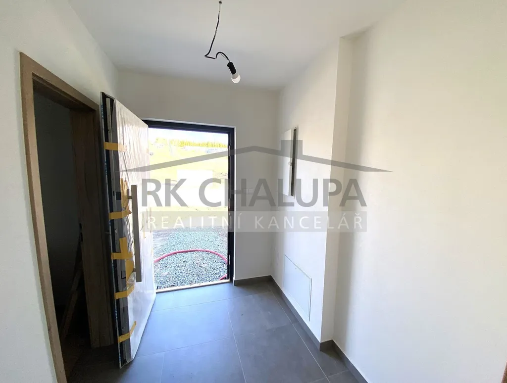 Nabízíme Vám k prodeji dokončenou novostavbu zděného nízkoenergetického rodinného domu, o dispozicí 4+1, na západním okraji obce Hosín, u Českých Budějovic. Zastavěná plocha je 114 m2. Celkový pozemek má výměru 752 m2, jižní svah, terén vyrovnaný. Vnitřní dispozice domu zahrnuje hlavní obývací místnost s jídelnou, s výstupem na jihozápadní terasu s krásným výhledem na Kleť, dále krbový obložený komín s přívodem vzduchu. Kuchyně je již nainstalována, kompletně moderně vybavena, samostatný mrazák, výstup na terasu. Dva neprůchozí dětské pokoje. Ložnice prostorná s výklenkem na vestavnou skříň. Na chodbě výstup na půdu k úložnému prostoru, pochozí stav. Samostatné WC s umyvadlem. Koupelna s 2. WC, sprcha se skleněnými dveřmi, prostor na pračku, okno, otopný žebřík. V technické místnosti se šatnou i umístění plynového kondenzačního kotle se zásobníkem na teplou vodu. Vytápění celopodlahové. Okna jsou v provedení "trojsklo". Celý objekt vybaven venkovními žaluziemi s dálkovým ovládáním nebo přes aplikaci. Kanalizace obecní. Vnitřní dokončení, tj. sanita, obklady, dlažba, podl. krytiny, parapety, obložky, již kompletně dokončeno. Zastávka příměstské dopravy na návsi, ČD v dosahu, nájezd na dálnici po 3 km. Autem 10 min. do centra města. Videoprohlídku zhlédnete na našich webových stránkách.