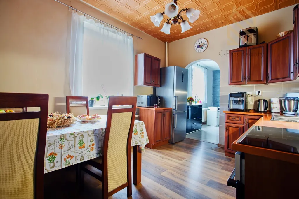 Nabízíme k prodeji patrový rodinný dům 4+1 v Ústí nad Labem v klidné a vyhledávané lokalitě v ulici Hostovická o celkové rozloze 725 m/2, zastavěná plocha domu činí 195 m/2,garáž má 28 m/2. Dům je ve velmi dobrém a udržovaném stavu, ihned k nastěhování, vhodný k drobným úpravám podle představ nového majitele. Dům je celý podsklepený, nezateplený, okna jsou plastová ,podlahy z dlažby, plovoucí podlahy, střecha je původní z pálených tašek, nové rozvody v plastu, majitel využívá vodu z vrtané studny a nyní je k dispozici projektová dokumentace na připojení k vodovodnímu řádu na hranici pozemku. Teplo zajišťuje kotel na uhlí, dřevo a bojler 120 l Dakon 3.emisní třídy. V domě je plně vybavená kuchyň, obývák dále koupelna s WC a v patře se nacházejí 3 pokoje, samostatné WC dále půda, kde se nabízí možnost vybudování dalšího obytného prostoru. K relaxaci slouží zahrada, která je pečlivě udržovaná s možností pěstování zeleniny, posezení v novém altánku či grilováním. Na pozemku jsou ovocné stromy, rybíz, maliny, jahody. Také je k dispozici krb s udírnou. Tento dům poskytuje příjemné bydlení s krásným výhledem do okolní krajiny a s výbornou dostupností do centra i do přírody i na dálnici D8. Parkování je možné v garáži nebo na ulici před domem, kde jsou k dispozici 3 parkovací místa. V případě Vašeho zájmu mne neváhejte kontaktovat a domluvit si prohlídku této zajímavé nemovitosti. Na tuto nemovitost je možné čerpat státní dotaci na rekonstrukci a energetická opatření. S hypotečním úvěrem Vám rádi pomohou naši specialisté.