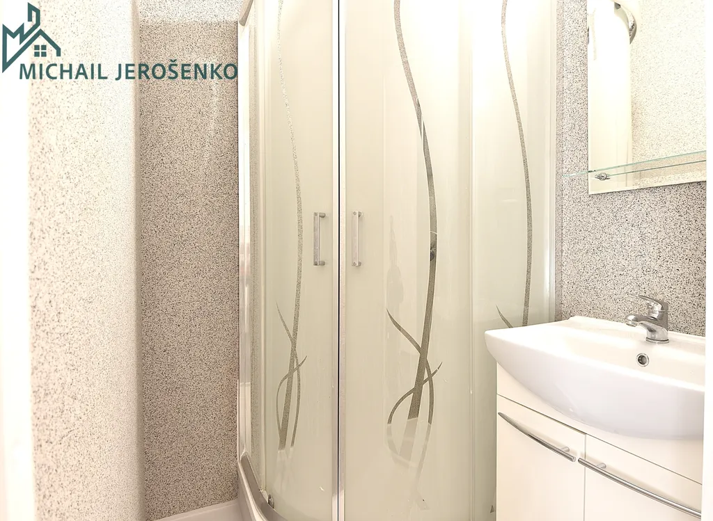 Samostatnou koupelnu se sprchovým koutem a oddělené WC.
