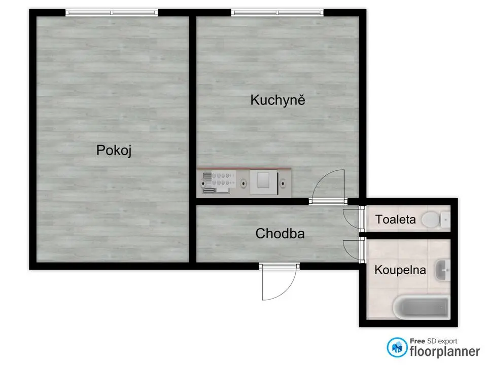 (Nájem 12.802,-Kč + 2.481,-Kč záloha na služby + elektřina a plyn na nájemce)