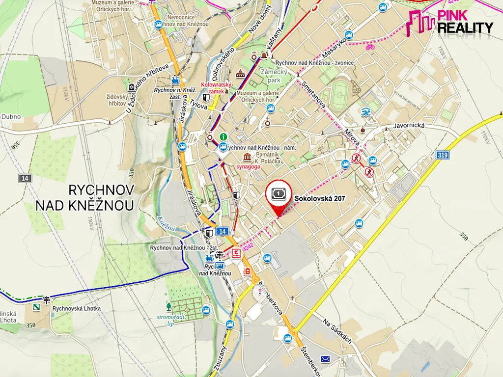 Nabízíme Vám prodej dvoupodlažního rodinného domu se zahradou v centru města Rychnov nad Kněžnou v ulici Sokolovská. Cihlový dům o dispozici 5+1 prošel v roce 2010 částečnou rekonstrukcí a je napojen na veřejný rozvod el., vody, plynu a odpad sveden do jímky. Z části je podsklepený (technické zázemí s plyn. kotlem), v 1. NP se nachází veranda, chodba se schodištěm, ložnice, obývací pokoj, kuchyně se vstupem na terasu, špajz, toaleta a 2. NP nabízí 3 pokoje a koupelnu. Půda slouží k uložení věcí, kterou lze rozšířit o další obytnou dispozici. Součástí zahrady, která díky vzrostlému živému plotu zajišťuje dostatek soukromí, je bývalá garáž sloužící jako sklad s dílnou a v průběhu března bude zapsána do katastru nemovitostí. Na tuto stavbu navazuje dřevěný altán s udírnou a grilem. Nabízí se Vám bydlení vhodné pro rodinu s dětmi v atraktivní lokalitě v centru města s veškerou občanskou vybaveností v těsné blízkosti. Pro více informací a prohlídku kontaktujte naši bezplatnou linku.