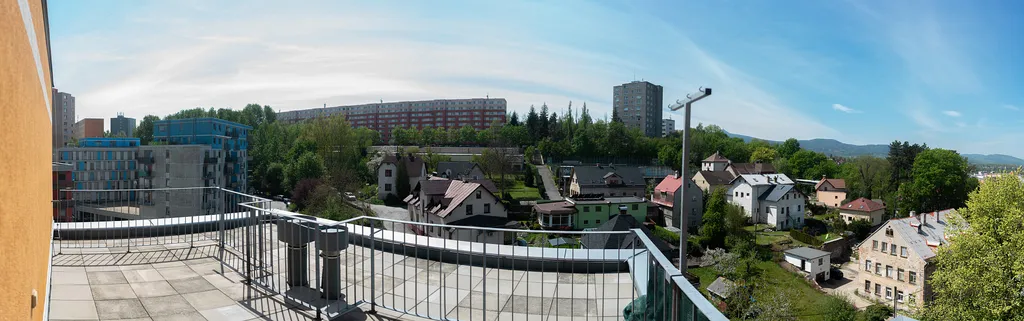 Dlouhodobý pronájem slunného a zcela nekuřáckého bytu 1+1 (38 m²) v poslední 6.nadzemním podlaží bytového domu s úžasnou střešní terasou a velikým balkonem - nechybí ani přímý výhled na Ještěd a celý hřeben Lužických hor. Rezidenční bytový komplex z roku 2006 byl navržen významným pražským architektem – www.pxpstudio.com / KOLAUDACE 26.8.2005. Hlavní dominantou a předností bytu je jednoznačně střešní terasa velikosti 16 m², kde si vychutnáte každodenní západ slunce se sklenkou dobrého vína; bonusem navíc je veliký balkon s jižní orientací a výhledem do zeleného odpočinkového atria - mimo hlavní příjezdovou komunikaci.