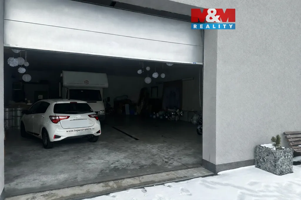 Garáž má vjezd o rozměrech cca 3,5 × 3,5 m, což umožňuje pohodlný přístup i větším vozům.
