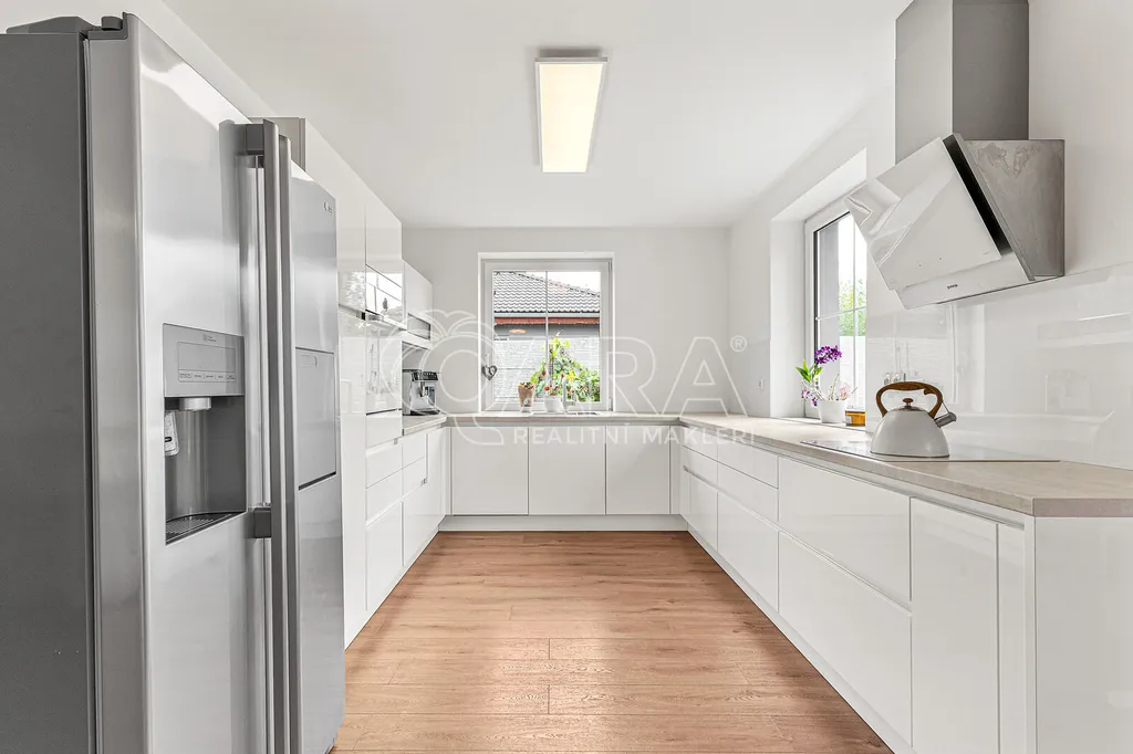Kvalitní novostavba RD 5+kk, 169 m2, na pozemku 1031 m2 s krásnou zahradou a výhledem do zeleně. Velmi prostorný obývací pokoj 54 m2 s plně vybavenou kuchyní, jídelním koutem a vstupem na terasu. 4 ložnice, koupelna s vanou a sprchovým koutem, 2 x toaleta. Garáž s přímým vstupem do domu, komora, technická místnost, šatna 6 m2, podlahové vytápění. Velká zahrada 822 m2 se závlahovým zařízením a úchvatným výhledem na lesík. Je zde dostatek místa pro bazén, pro rozšíření terasy, popřípadě zahradní domek. Komfortní dům s ideální polohou- tiché a klidné místo s krásným výhledem a soukromím- v rezidenční čtvrti s dobrou občanskou vybaveností- školka, obchod, restaurace či hřiště a v pěší dostupnosti velký Retail park s více než 20 prodejnami. Výborná dostupnost do Prahy, na metro Letňany či Kobylisy pouhých 20 min. Doporučujeme.