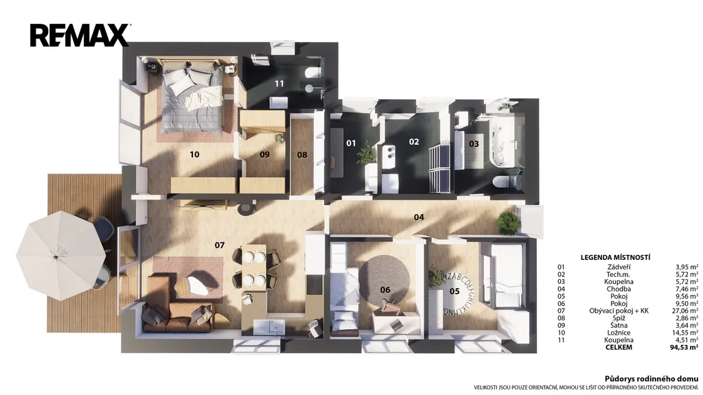 Dispozice 4+kk (123 m²) – dostatek prostoru pro dětské pokoje i pracovnu