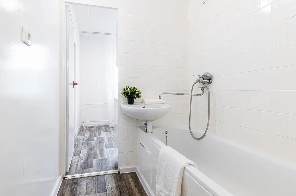 Byt je v původním, pečlivě udržovaném stavu – koupelna i kuchyň jsou funkční, ale ponechávají prostor pro modernizaci dle vlastních představ.