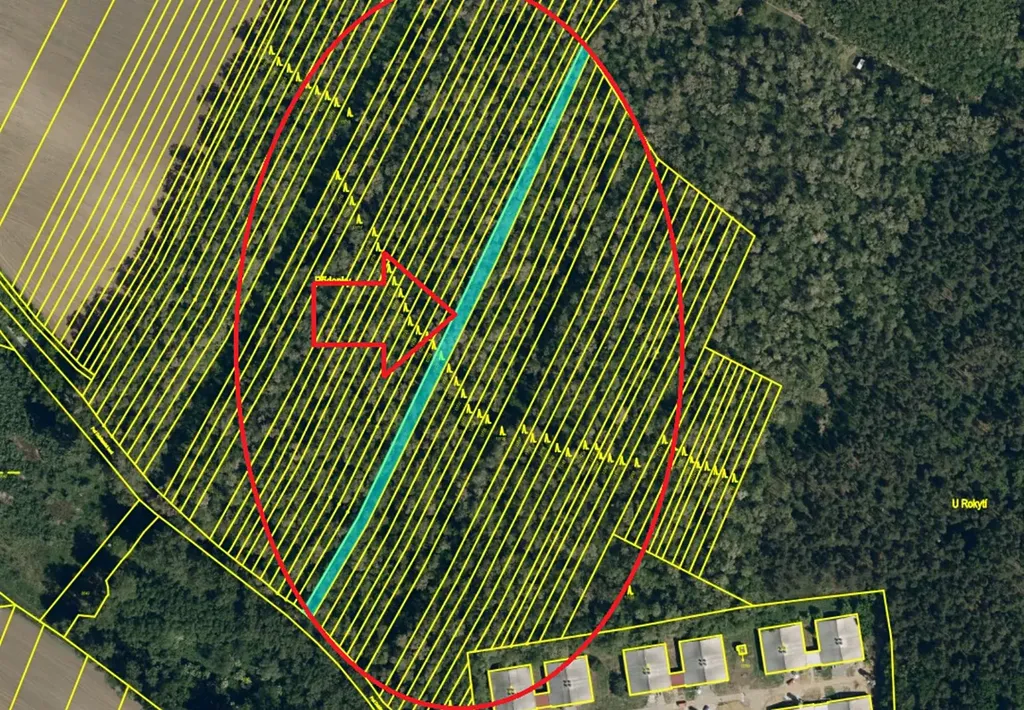 - p.č. 13729 vedená jako lesní pozemek o celkové výměře 2 183 m2, z toho vlastníme podíl 5/6 tedy 1 819 m2 (stáří lesa 73 let - zastoupení dřevin akát).