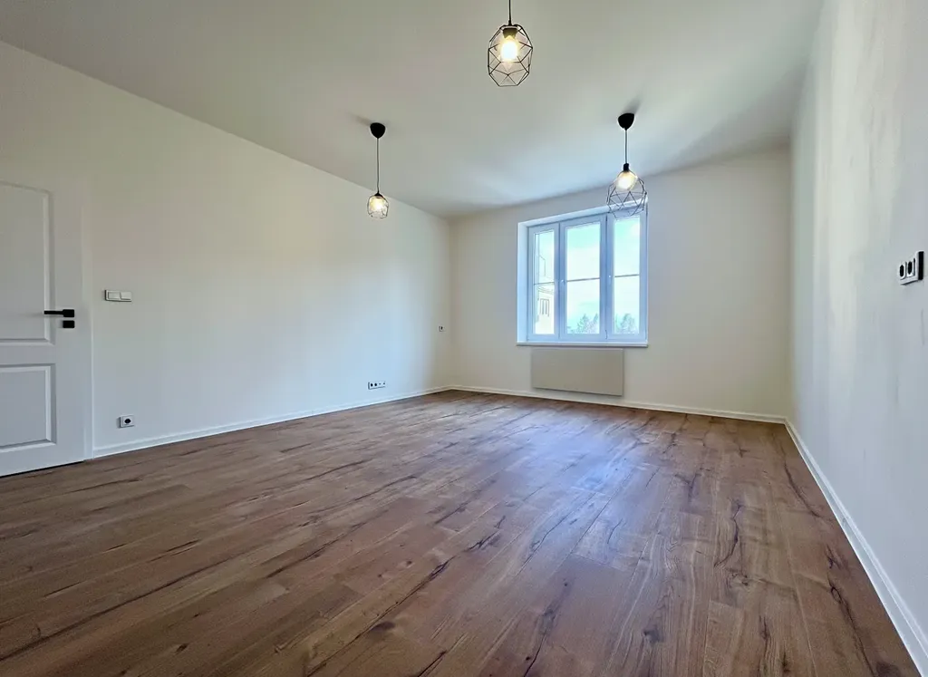 Interiér prošel precizní a kompletní rekonstrukcí, díky které vznikl prostor splňující nároky na současné komfortní bydlení i bezpečnou investici. Dominantou bytu jsou krásné dřevěné podlahy, které dodávají obytným místnostem teplo a eleganci. Vstupní část, koupelna a toaleta jsou osazeny velkoformátovou dlažbou, která podtrhuje čisté linie celého interiéru.