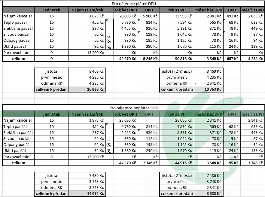(cena bez služeb ve výši 965,- Kč/m2/rok)