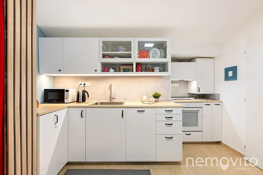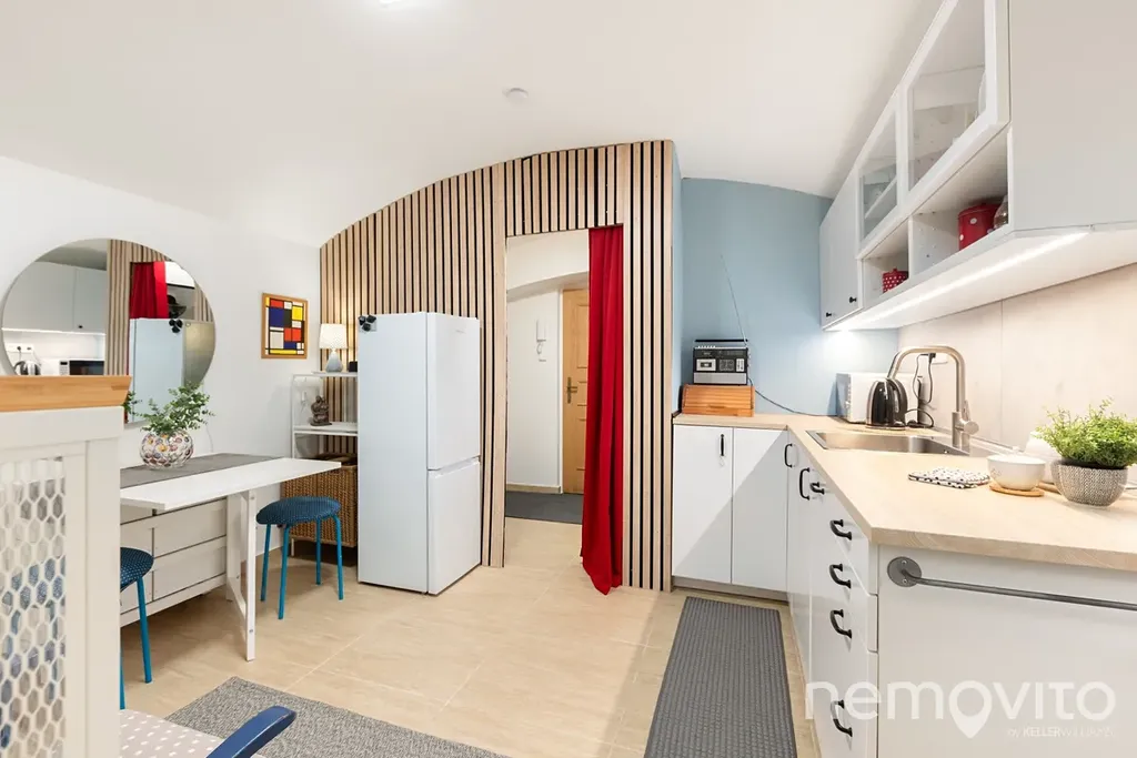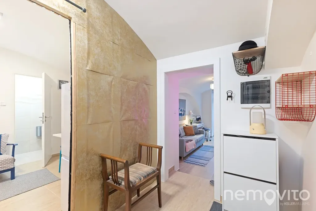 Atelier 2+1 s příjemnou západně orientovanou teráskou a velkými okny do dvora, tedy zcela mimo provoz a ruch. Ateliér s klenutými stropy je umístěn o půl úrovně pod dvorem, do kterého má orientovaný výhled. Kompletní rekonstrukcí prošel v roce 2024 a je plně vybavený, funkční a bez investic.