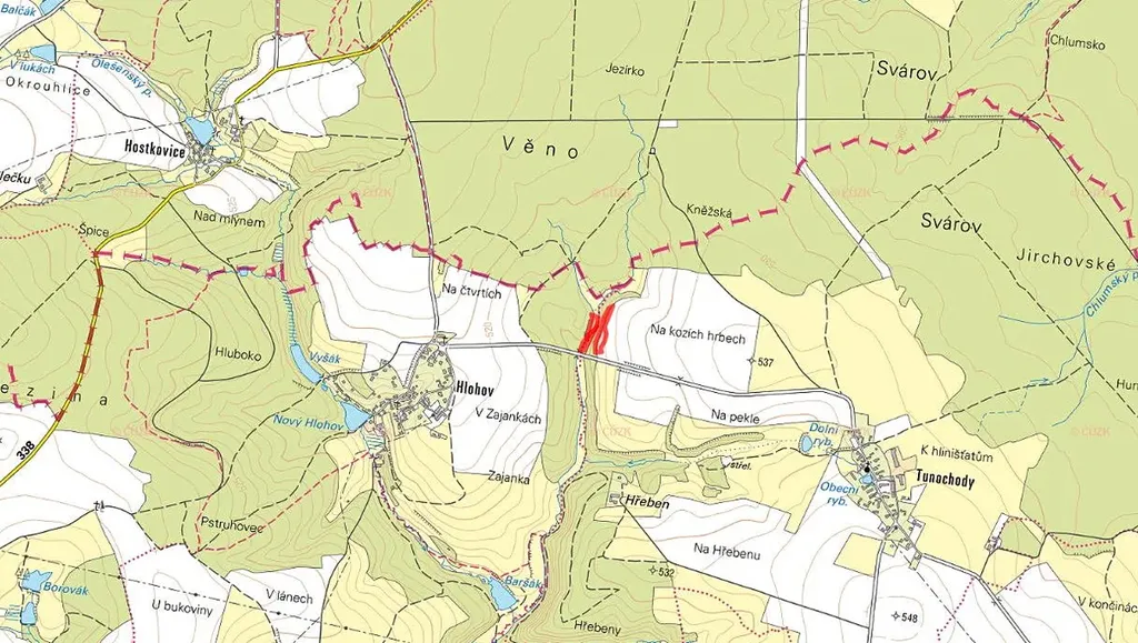 Pozemky jsou vedeny na katastru nemovitostí pod listem vlastnictví 215 a parcelními čísly 555 a 880 v KÚ Tunochody a na listu vlastnictví 215 pod číslem parcely 217 v kÚ Hlohov.