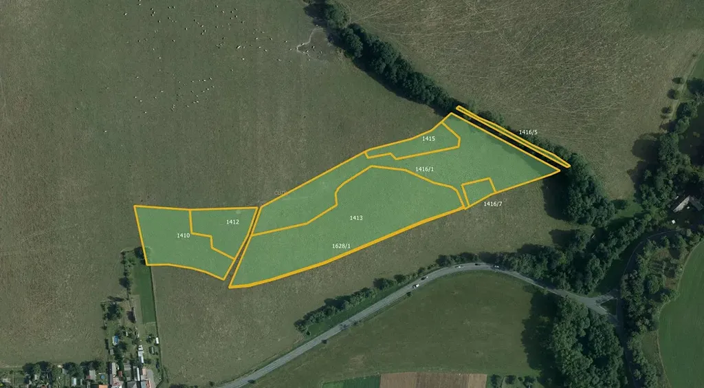 Předmětem prodeje jsou tyto parcely: 999, 1410, 1412, 1413, 1415, 1416/1, 1416/5, 1416/7 a 1628/1.