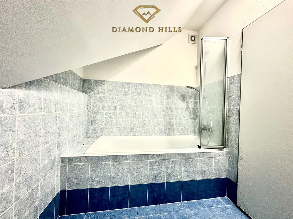 K dispozici je také koupelna s vanou a přípravou na pračku, samostatná toaleta a dostatek úložného prostoru. Vytápění řeší vlastní elektrokotel, ohřev vody bojler – spotřebu má nájemník plně pod kontrolou.
