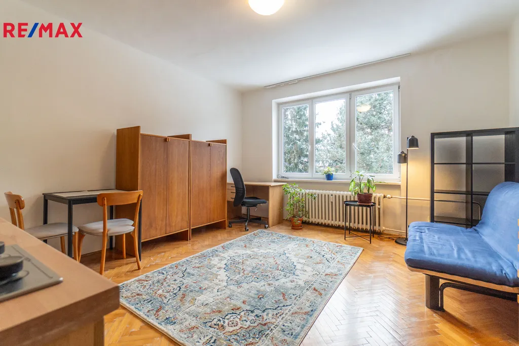 Nabízíme k pronájmu světlý byt o dispozici 1+kk a podlahové ploše 28,6 m², situovaný v ulici Jeremenkova v Praze 4 – Krč. Byt se nachází ve 4. nadzemním podlaží udržovaného domu bez výtahu a díky velkému oknu působí velmi vzdušně a příjemně. Praktická dispozice nabízí otevřený obytný prostor s kuchyňským koutem a dostatkem místa pro pohodlné každodenní fungování.
