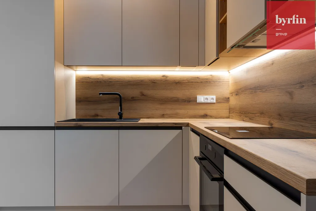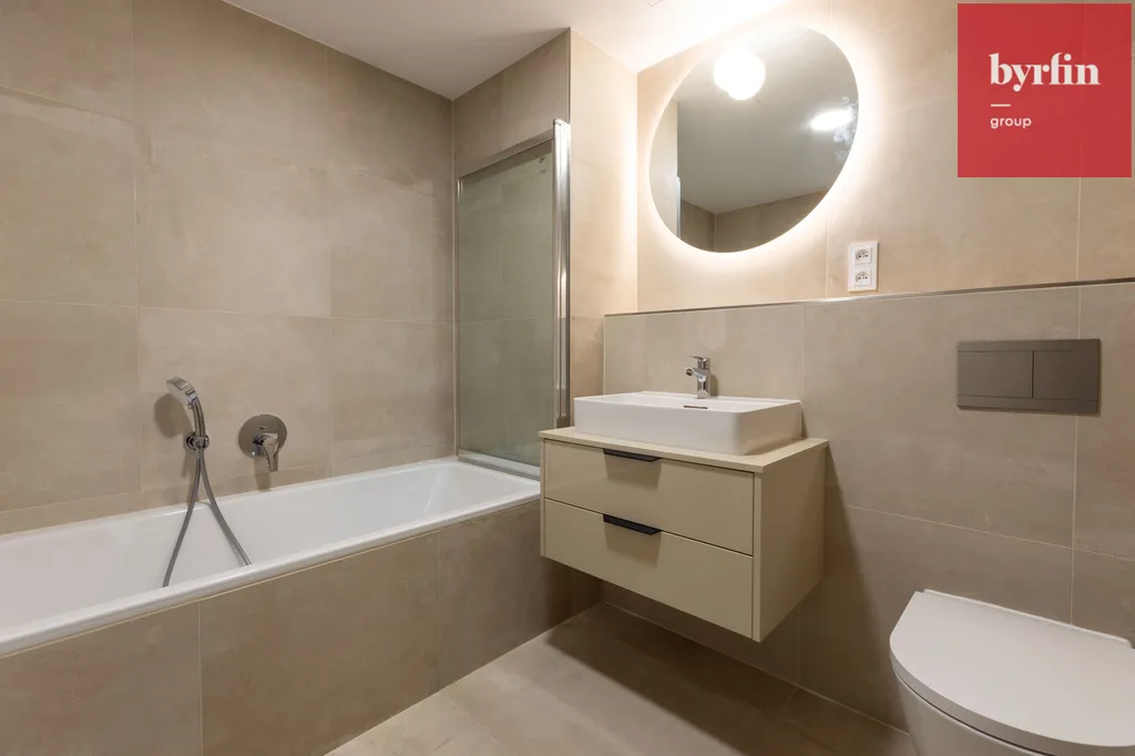 Tento krásný a útulný byt se nachází v uzavřeném areálu, který je přístupný pouze pro rezidenty. Obývací pokoj je propojen s kuch. koutem (s el. troubou, varnou deskou a myčkou nádobí), k vybavení patří lednička s mrazákem. Dominantu tvoří pohodlné schodiště, kterým se vchází do druhého podlaží bytu, kde je umístěna ložnice, šatní skříň. V 1. podlaží bytu při vstupu do bytu se nachází také velká koupelna se sprchovým koutem a WC, je zde prostor a přípojka na pračku, sušičku.Vytápění je centrální, v bytě je klimatizace. Tento byt se právě připravuje pro prvního nájemníka.