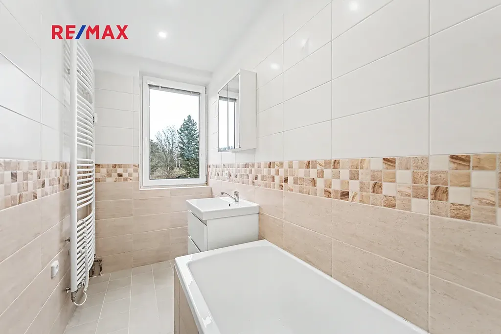 V bytě je zcela nová, dosud nikým nepoužívaná, koupelna a WC, okna jsou nová, plastová. Podlahy, elektřina a vnitřní dveře jsou původní. Jedná se o nadstandardně veliký, prostorný byt, který nabízí budoucím majitelům pěkné bydlení s dostatkem místa pro celou rodinu.