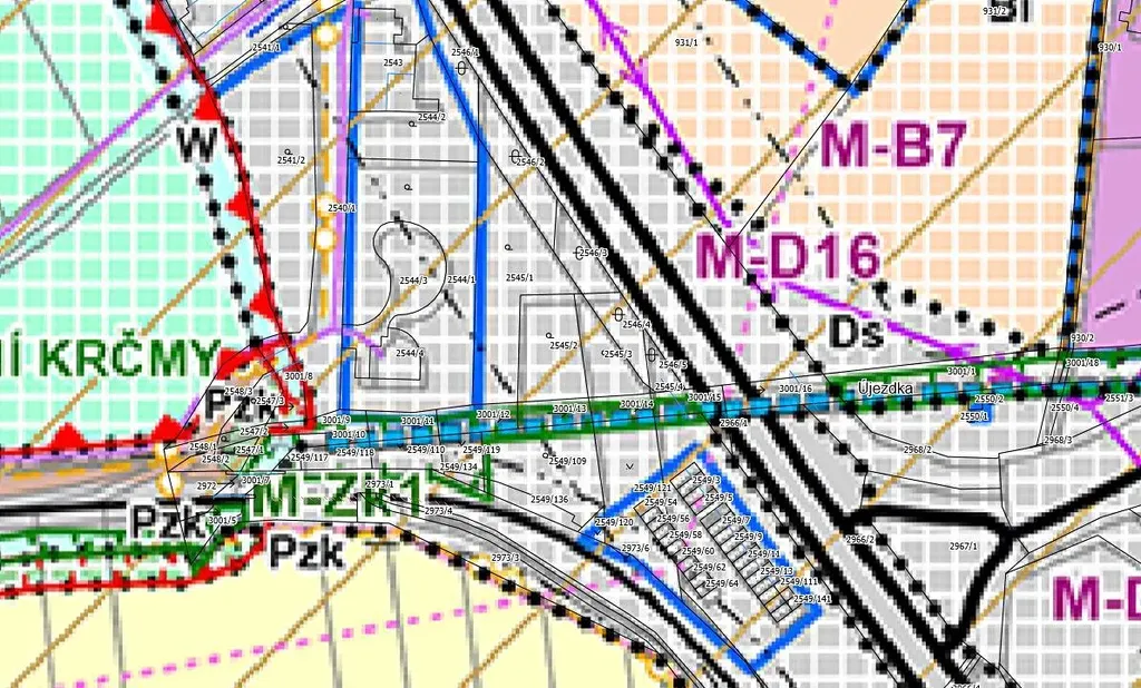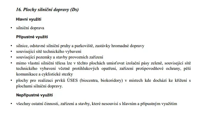 V současném návrhu územního plánu jsou plochy označeny jako DS – Plochy silniční dopravy.