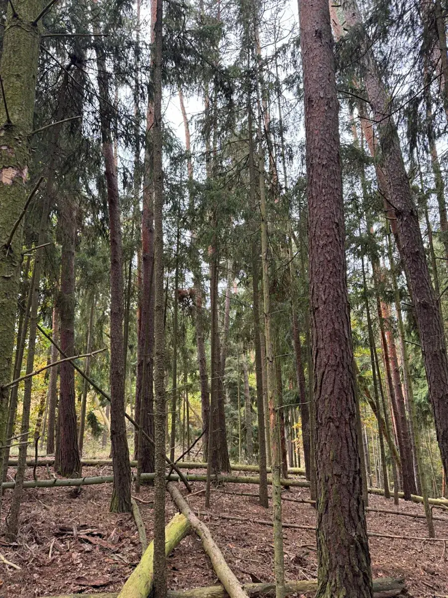 - p.č. 665/45 vedená jako lesní pozemek o celkové výměře 119 m2 (stáří lesa 119 let - zastoupení dřevin borovice)