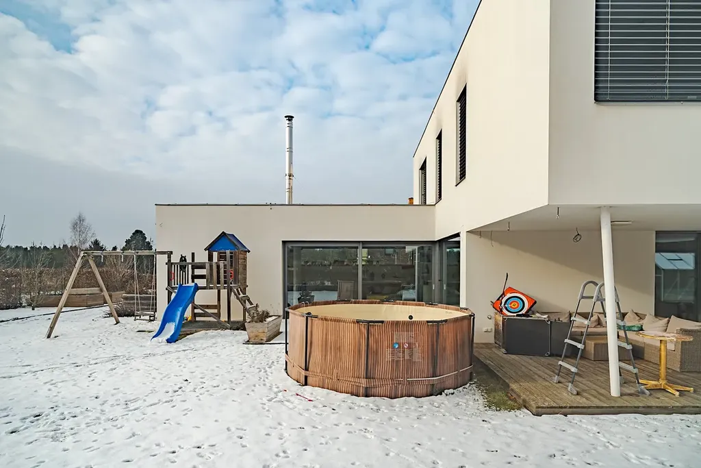 Exkluzivně nabízíme k prodeji moderní rodinný dům v Litomyšli, v klidné a vyhledávané lokalitě na ulici Luční. Jedná se o kvalitní novostavbu s promyšlenou dispozicí, nadstandardním technickým řešením a velmi úsporným provozem. Dům je ideální volbou pro klienty, kteří hledají komfortní bydlení bez kompromisů. Patrový dům má dispozici 5+kk a celkovou užitnou plochu cca 218 m². Součástí domu je dvougaráž, prostorné terasy, venkovní bazén, upravená zahrada a dostatek parkovacích míst na vlastním pozemku. Nemovitost se nachází na pozemcích o celkové výměře 925 m², které tvoří zastavěná plocha a nádvoří o výměře 210 m² a navazující zahrada o výměře 715 m², poskytující dostatek soukromí i prostoru pro relaxaci. Po vstupu do domu se dostáváme do zádveří, odkud je přímý vstup do garáže i do hlavní obytné části. V přízemí se dále nachází koupelna s technickým zázemím, pracovna nebo pokoj a hlavní obytný prostor domu. Ten tvoří propojená kuchyň, jídelna a obývací pokoj, vše krásně prosvětlené velkými okny s přímým vstupem na terasu a zahradu. Tento prostor působí velmi vzdušně a příjemně a je ideálním místem pro každodenní rodinný život i setkávání s přáteli Po designovém schodišti se dostaneme do patra, kde se nachází ložnice, dětské pokoje, koupelna, samostatné WC a další úložné prostory. Dispozice patra nabízí dostatek soukromí pro všechny členy domácnosti a možnost flexibilního využití jednotlivých místností. Dům byl postaven z kvalitních materiálů, jako je zděná konstrukce HELUZ, zateplení, hliníková okna s trojskly, venkovní žaluzie a plochá střecha s kvalitní izolací. Po celou dobu je velmi pečlivě udržovaný a ve výborném technickém stavu. Velkou výhodou této nemovitosti je moderní technologické vybavení. Vytápění zajišťuje tepelné čerpadlo země–voda v kombinaci s podlahovým vytápěním a radiátory, v obývacím pokoji se nachází krb. Součástí domu je fotovoltaická elektrárna o výkonu 9,18 kWp s baterií 15 kWh a wallboxem pro nabíjení elektromobilu, což výrazně snižuje provozní náklady. Dům je dále vybaven retenční nádrží na dešťovou vodu, je napojen na veřejný vodovod a kanalizaci, má oddílnou kanalizaci pro dešťové a splaškové vody, elektrickou pojezdovou bránu, zabezpečení a připravené rozvody internetu. Nemovitost má energetickou třídu B – velmi úsporná. Díky kombinaci tepelného čerpadla a fotovoltaiky jsou provozní náklady velmi nízké. Roční spotřeba elektřiny se pohybuje kolem 3 600 kWh, s pravidelnými přeplatky, aktuální měsíční záloha činí přibližně 2 400 Kč. Na pozemku se nachází venkovní bazén, dřevěné terasy, zpevněné plochy a upravená zahrada, která je prakticky řešená a nenáročná na údržbu. Celý prostor poskytuje dostatek soukromí i klidné zázemí pro rodinné bydlení. Dům se nachází v klidné rezidenční části Litomyšle na ulici Luční, s výbornou dostupností do centra města, škol, školek, obchodů i služeb. Lokalita patří dlouhodobě mezi nejvyhledávanější v Litomyšli. K nemovitosti je k dispozici kompletní projektová a technická dokumentace včetně stavebních výkresů, PENB, projektů technických instalací i vyúčtování energií, takže má budoucí majitel k dispozici veškeré podklady o technickém stavu domu.Tato nemovitost nabízí nadstandardní bydlení s důrazem na kvalitu, úspornost a dlouhodobou hodnotu. Díky své poloze, vybavení a technickému řešení patří mezi nejzajímavější rodinné domy v Litomyšli a jeho okolí. Rozhodně doporučujeme osobní prohlídku.