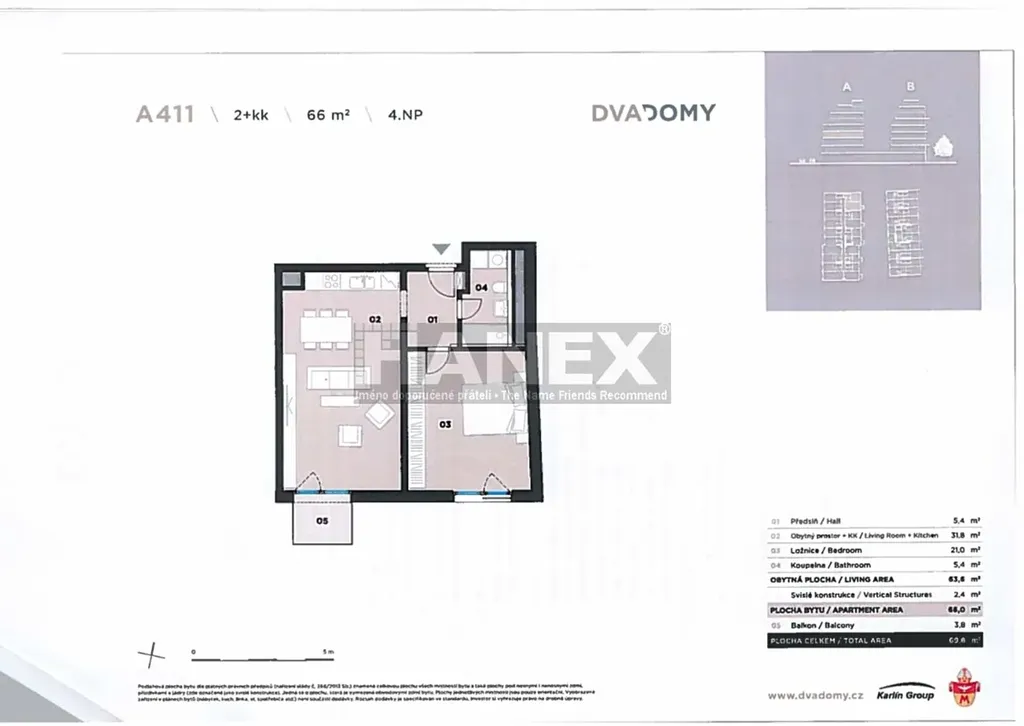 Stylové bydlení v srdci Karlína. V novém rezidenčním projektu DVA DOMY nabízíme na prodej moderní prostorný byt 2+kk o velikosti 66 m2, plus balkon 3 m2, sklep a garážové stání. Byt se nachází ve 3. patře novostavby z roku 2022. Interiér tvoří velký obývací pokoj (32 m2) s kuchyňskou linkou a vstupem na balkon orientovaný do vnitrobloku s výhledem na kostel sv. Cyrila a Metoděje. Dále je zde velká ložnice (20,7 m2) s úložnou skříní po celé délce pokoje, koupelna s vanou, toaletou a pračkou, předsíň. Plně zařízená kuchyňská linka s vestavěnými spotřebiči.