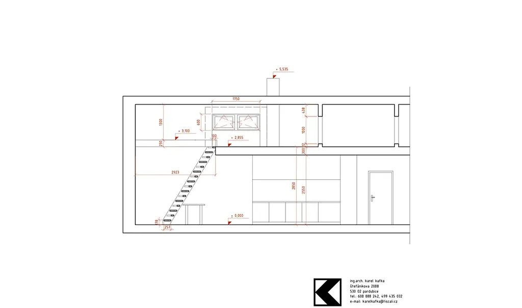 4. NP: úložné prostory nad obývacím pokojem: 4,1 m², patro na spaní: 10,7 m², věž (horní část): 6,1 m²
