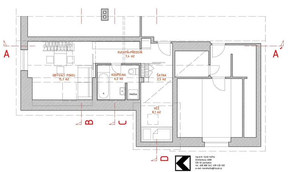 Celková podlahová plocha: 60 m² (z toho 47 m² dle ČSN – plocha nad 1,2 m výšky)