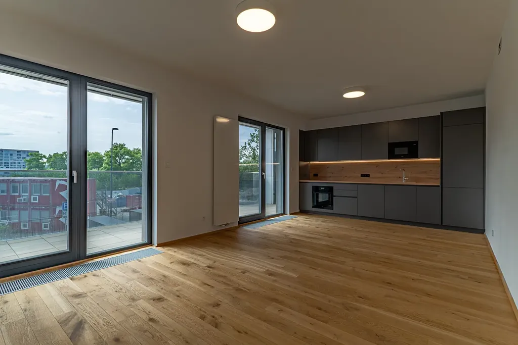 Moderní 2+kk s velkorysou terasou (21 m²), garážovým stáním a sklepem – Karlín, ul. Sokolova