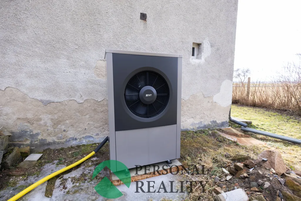 Vytápění zajišťuje nové tepelné čerpadlo (voda – vzduch), které je v záruce.