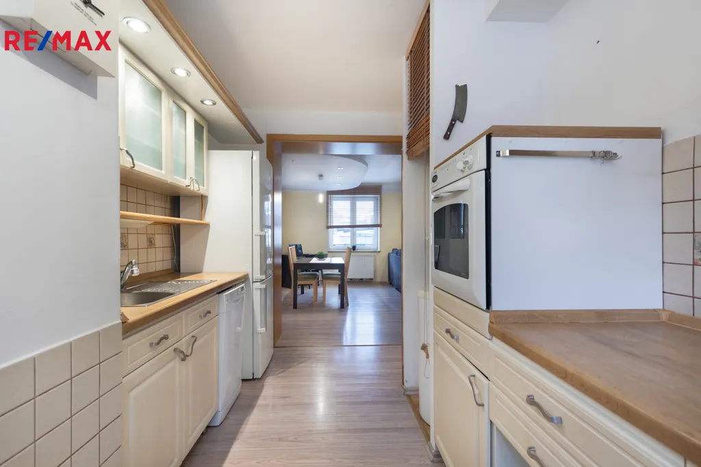 Kuchyně je plně vybavena funkčními spotřebiči. Stačí přinést osobní věci a můžete bydlet.