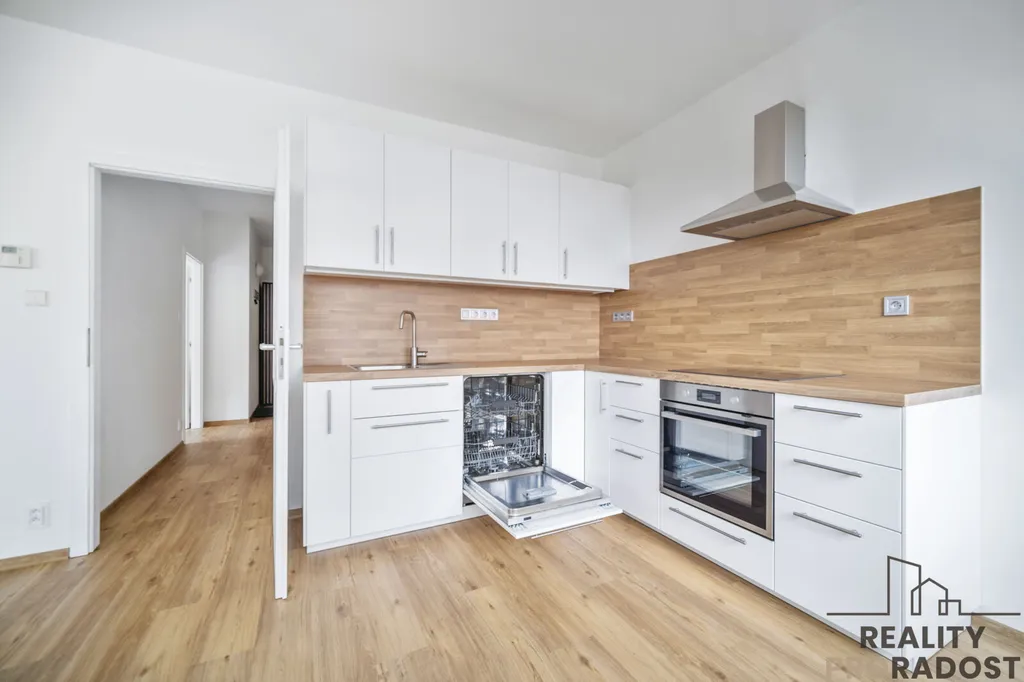 Byt po rekonstrukci: nová kuchyňská linka a vinylová podlaha (květen 2025), nová plastová okna s trojsky