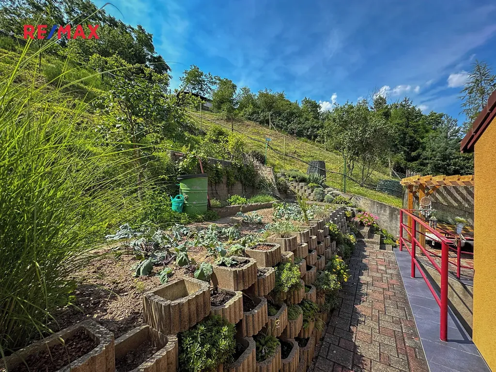 Součástí domu je zahrada o výměře 451 m² orientovaná do svahu, která je členěná do teras. Využít můžete i dvorek a předzahrádku. Najdete zde jak užitková, tak odpočinková zákoutí, altán, vlastní studnu ve sklepě i technické zázemí včetně kotelny, dílny a skladovacích prostor. Parkování je možné přímo před domem, případně za brankou, a stávající počet míst lze navýšit jednoduchou úpravou předzahrádky.