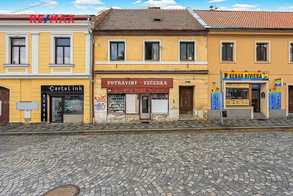 V přízemí se nyní nachází večerka, zadní část přízemí je momentálně nevyužívána – lze využít jako skladovací prostor, nebo případně zvětšit a rozšířit stávající prodejnu. V horní části domu se nachází dvě bytové jednotky – jedna je obývána majiteli večerky, druhá bytová jednotka je prázdná. Každý z bytů má samostatný odběr elektřiny i samostatný vchod. V půdních prostorech se nachází bývalý ateliér a půda. Dům je podsklepený, ve sklepě je vlastní studna. Zaparkovat lze bezproblémově za domem.