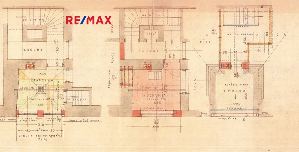 + sklep a půdní prostory. Výměra vnitřních prostor je orientační, překreslené půdorysy budou do inzerátu ještě dodatečně vloženy.