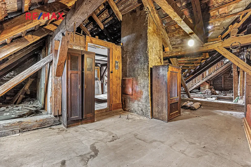Objekt vyžaduje rekonstrukci včetně střechy. Budoucího majitele čekají stavební úpravy, které se však rychle mohou díky potenciálu domu zúročit.
