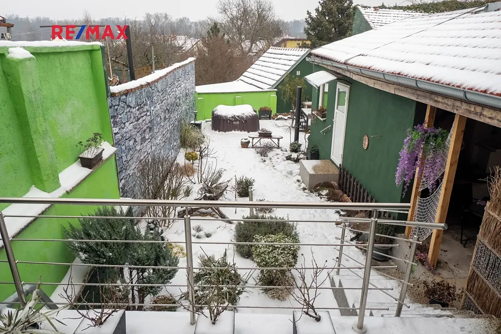 Zahrada je okrasného typu s minimální údržbou, nabízí venkovní vířivku, posezení a prostor pro případnou letní kuchyň. Ideální místo pro relax i rodinné chvíle.