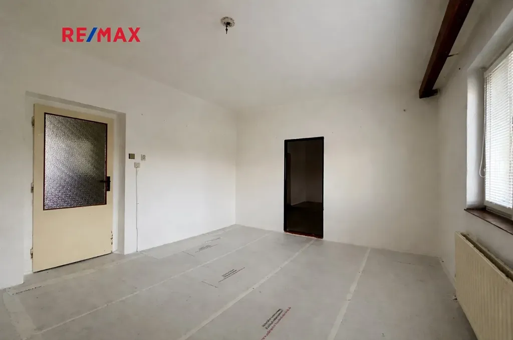 Dům disponuje přízemím s užitnou plochu 116 m². Hlavním vchodem vstoupíme do haly, která sloužila také jako jídelna. Z ní je pak vstup do jednotlivých pokojů a schody do podkroví. Dům je podsklepený. Ve sklepě je technická místnost a je zde prostor pro větší dílnu. Podkroví je připraveno pro Váš projekt. Můžete si jej dispozičně uzpůsobit dle Vašich potřeb.