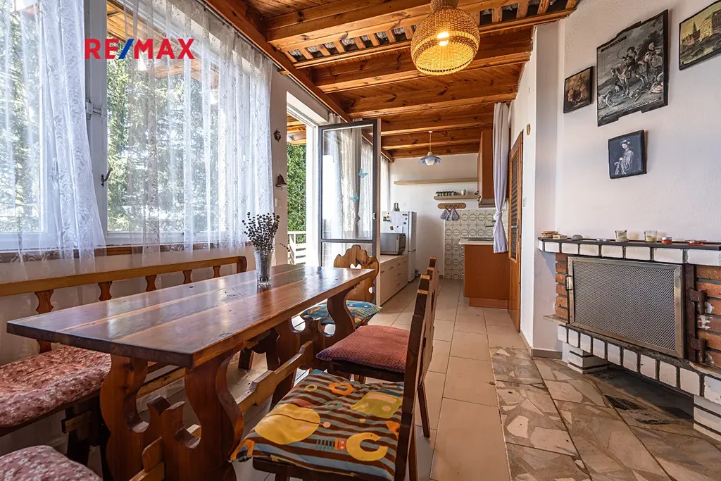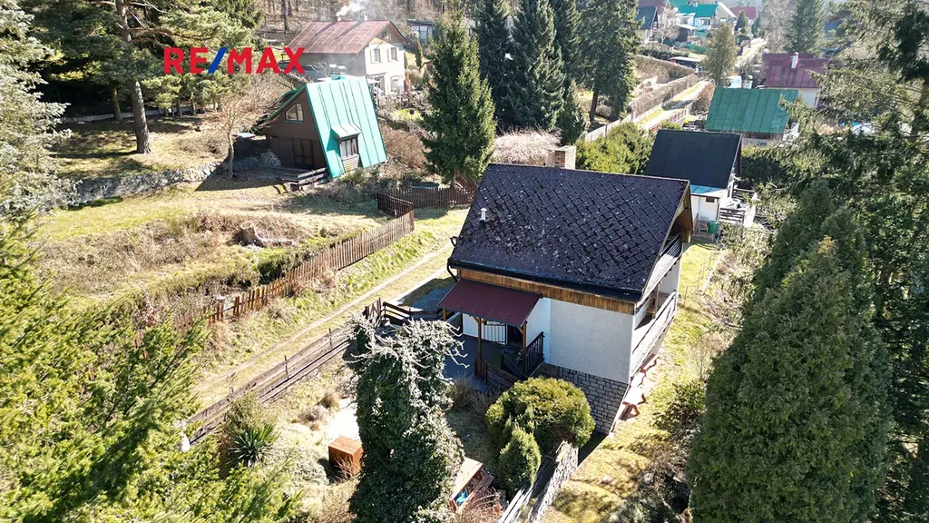 Prodej zděné chaty na pozemku o velikosti 377 m2. Chata se rozkládá ve 3 podlažích. 1.NP: 2x ložnice, velká skladovací místnost, technická místnost, kde je umístěn boiler. 2.NP: hlavní vstup do chaty, předsíň, toaleta, místnost s umyvadlem, obývací pokoj s krbem a vstupem na balkon, kuchyň, vaření - sklokeramická deska, garáž 3.NP koupelna s vanou a toaletou, 2x ložnice, vstup na balkon. Vytápění chaty řešeno krbem a elektrickými přímotopy, do chaty se přiveden obecní sezónní vodovod (březen - listopad) v tuto chvíli se jedná o povolení na studnu, což umožní celoroční využití chaty. Příjezd k chatě po obecní zpevnění komunikaci. U chaty možnost zaparkovat dvě auta.