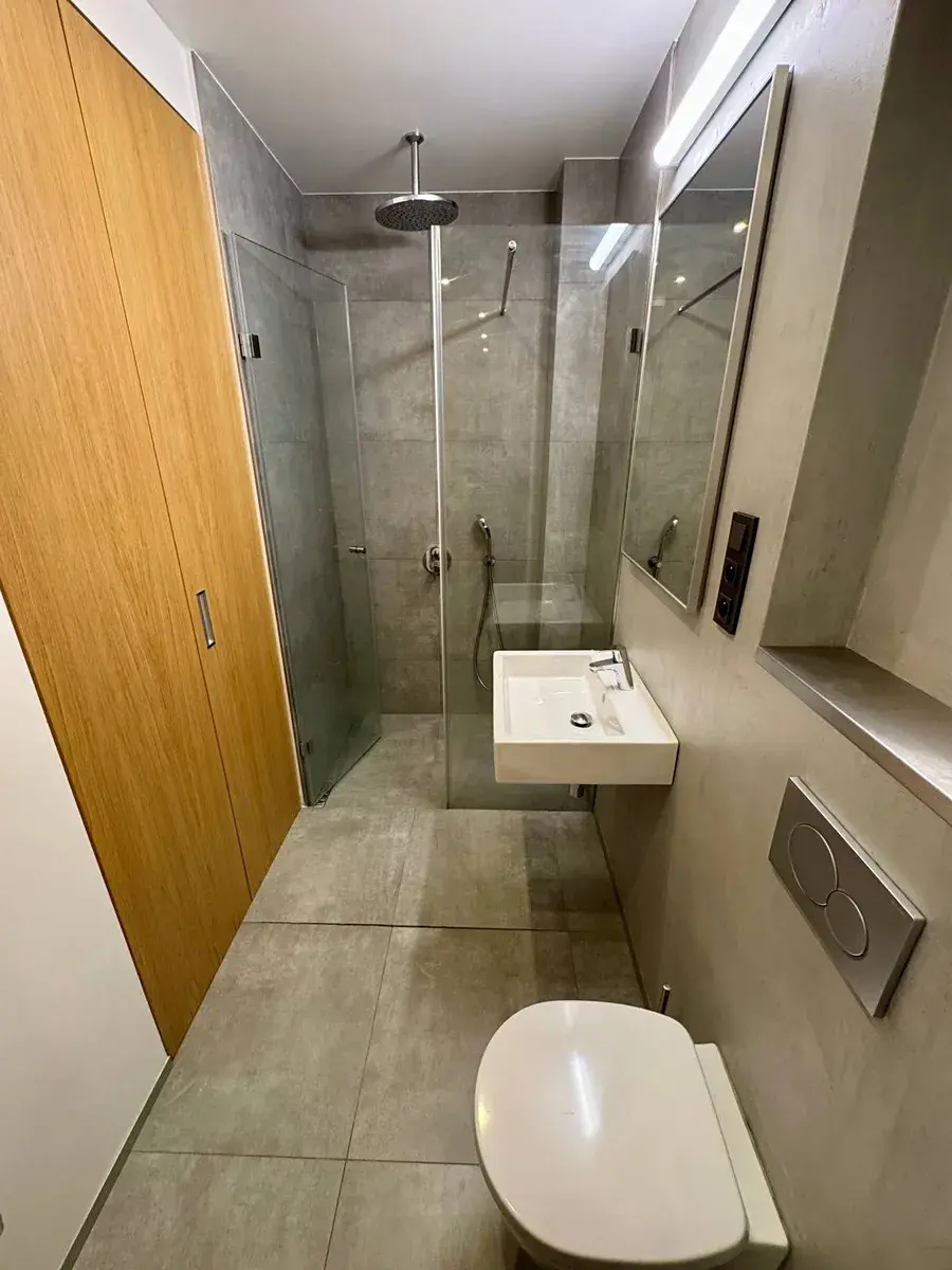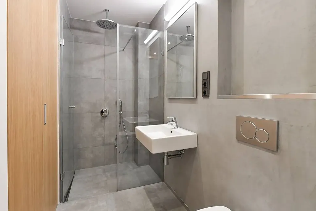 • koupelna s toaletou a sprchovým koutem (5,6 m²) s elektrickým podlahovým vytápěním