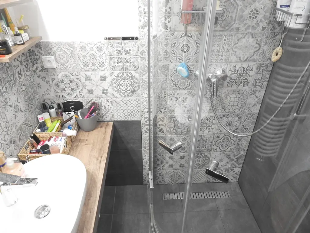 wc po rek. ( samostatné ), zrekonstruovaná koupelna se sprchovým koutem.